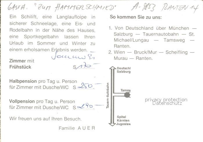 72179951 Ranten Gasthof Zum Hammerschmied Kegelbahn Pony postalisch nicht gelaufen Werbekarte (keine Postkarte) Erhaltung siehe scans KatCode: 11390226061418