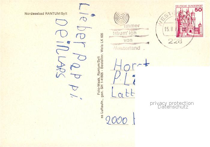 73097892 alte Postkarte Rantum Sylt Fliegeraufnahme postalisch gelaufen Erhaltung siehe scans [WerneD78] KatCode: 11110001054107