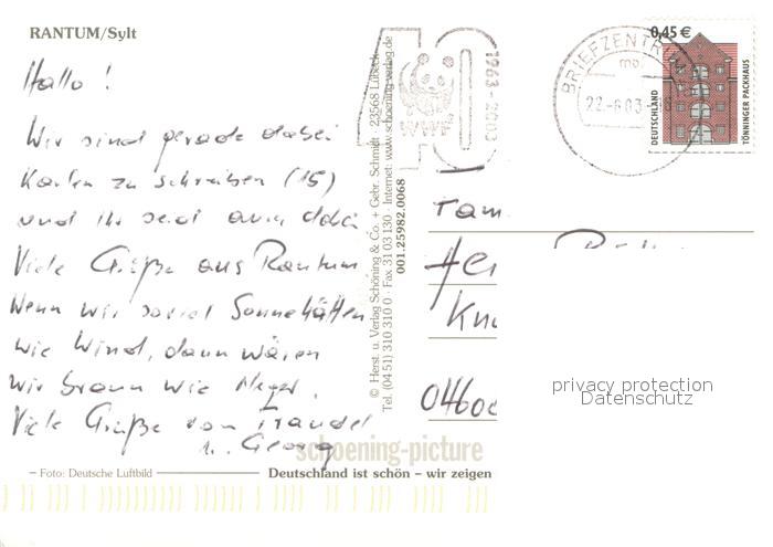 73745857 alte Postkarte Rantum Sylt Fliegeraufnahme postalisch gelaufen Erhaltung siehe scans [FriedD77] KatCode: 11110001054107
