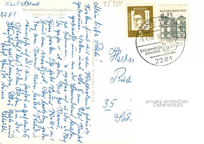 72888917 alte Postkarte Rantum Sylt Fliegeraufnahme Budesbahnerholungsheim postalisch gelaufen Erhaltung siehe scans [AndreD76] KatCode: 11110001054107
