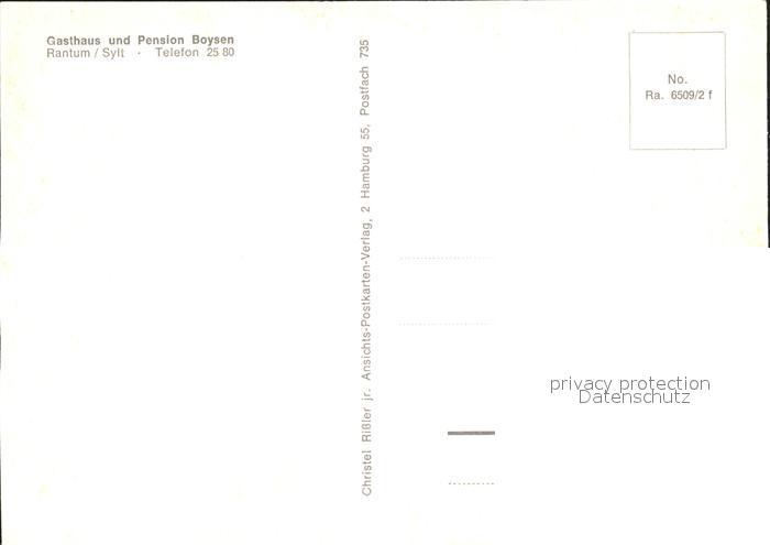 71996343 Rantum Sylt Gasthaus Pension Boysen postalisch nicht gelaufen KatCode: 11110001054107