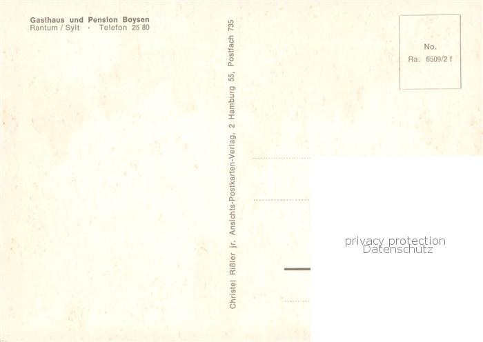 73838057 Rantum Sylt Gasthaus Pension Boysen postalisch nicht gelaufen Erhaltung siehe scans [FriedD77] KatCode: 11110001054107