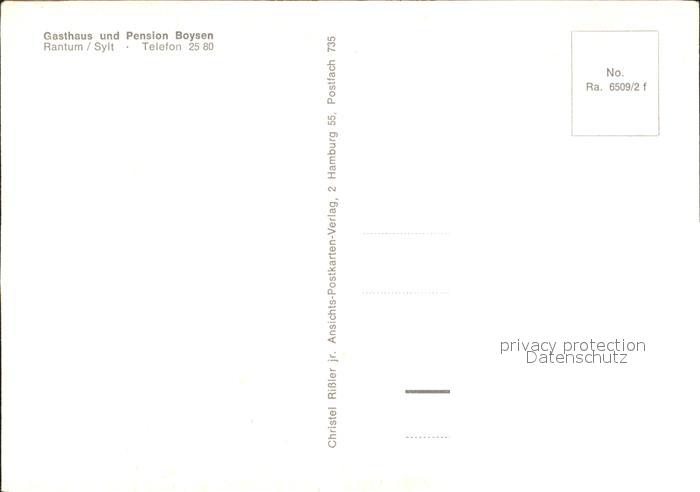 72210681 Rantum Sylt Gasthaus Pension Boysen postalisch nicht gelaufen Erhaltung siehe scans KatCode: 11110001054107