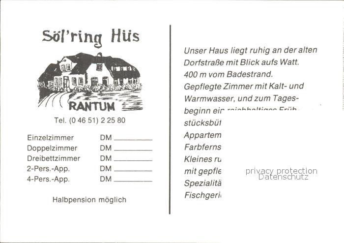 72076806 Rantum Sylt Gasthaus Soel ring Hues postalisch nicht gelaufen Werbekarte (keine Postkarte) Erhaltung siehe scans KatCode: 11110001054107