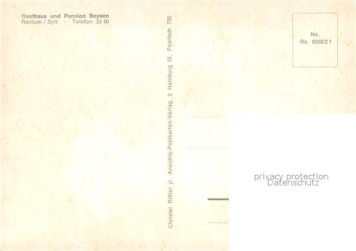 73672301 Rantum Sylt Gasthaus und Pension Boysen postalisch nicht gelaufen Erhaltung siehe scans [WerneD78] KatCode: 11110001054107