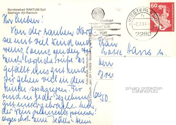 73171234 alte Postkarte Rantum Sylt Seeheim Alt-Rantum Nordseebad Fliegeraufnahme postalisch gelaufen Erhaltung siehe scans [FriedD77] KatCode: 11110001054107
