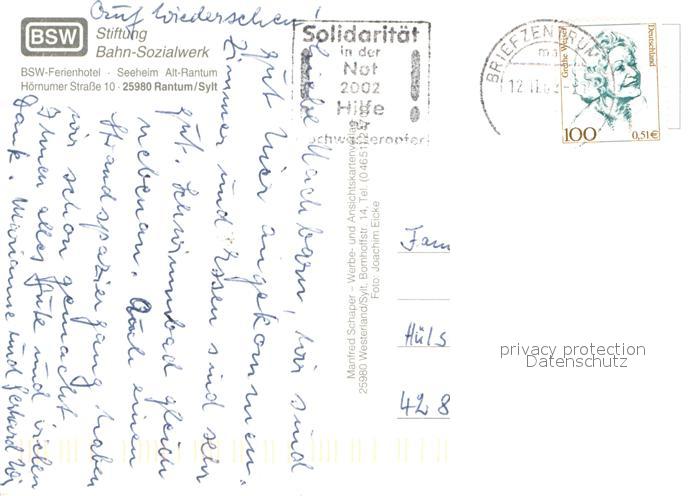 73717697 alte Postkarte Rantum Sylt Stiftung Bahn Sozialwerk Fliegeraufnahme postalisch gelaufen Erhaltung siehe scans [WerneD78] KatCode: 11110001054107