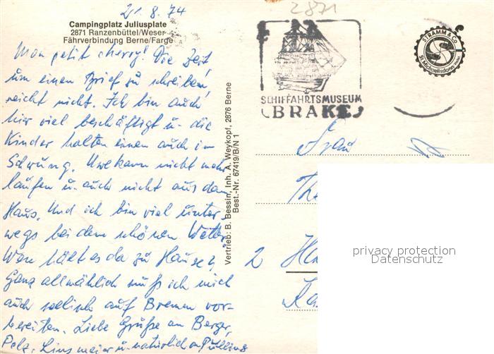 73711413 alte Postkarte Ranzenbuettel Wesermarsch Campingplatz Juliusplate postalisch gelaufen Erhaltung siehe scans [LiesaD40] KatCode: 11110003461001