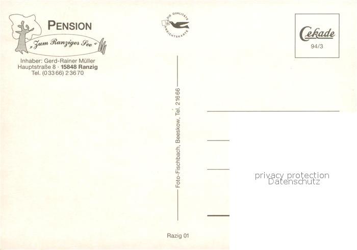 73653946 Ranzig Pension Zum Ranziger See Uferpartie postalisch nicht gelaufen Erhaltung siehe scans [FriedD77] KatCode: 11110012067493