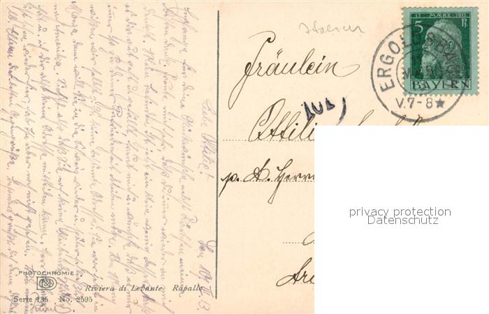 old postcard Rapallo Castello Riviera di Levante Hafenburg Photochromie Serie 135 No 2595 postalisch gelaufen Erhaltung siehe scans [FriedD77]