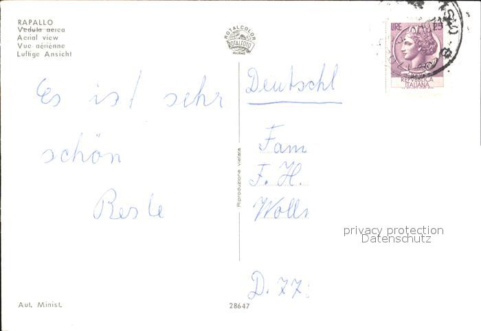 old postcard Rapallo Fliegeraufnahme postalisch gelaufen Erhaltung siehe scans