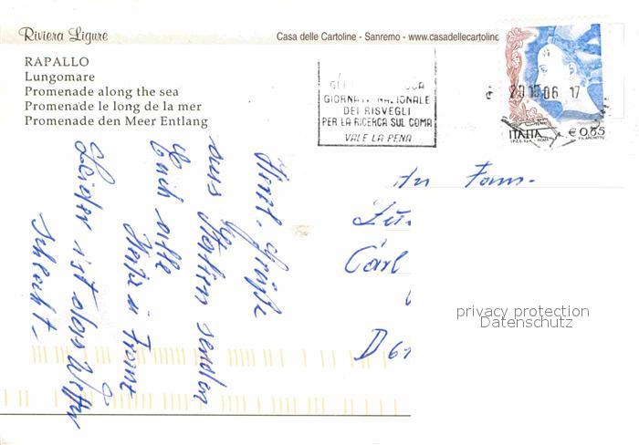 old postcard Rapallo Hafenpromenade postalisch gelaufen Erhaltung siehe scans [AndreD76]