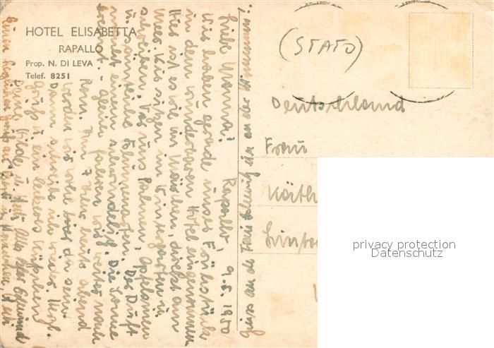 73740592 Rapallo Hotel Elisabetta postalisch gelaufen Erhaltung siehe scans [WerneD78] old postcard Wern Katcode 11240