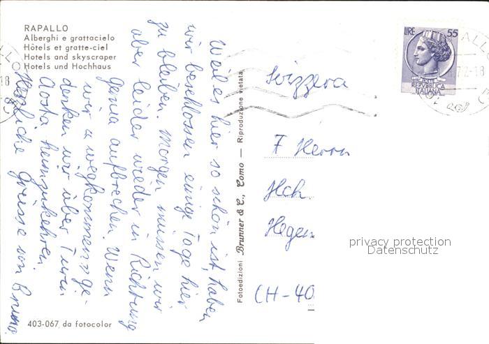 old postcard Rapallo Hotel Hochhaus postalisch gelaufen Erhaltung siehe scans