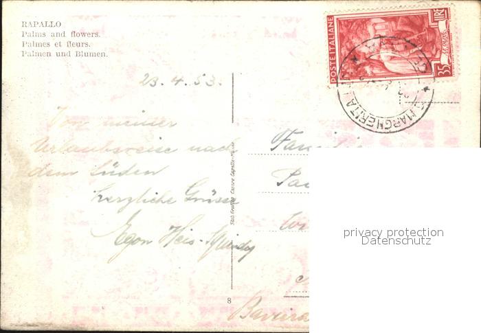 old postcard Rapallo Palme e Fiori postalisch gelaufen Erhaltung siehe scans