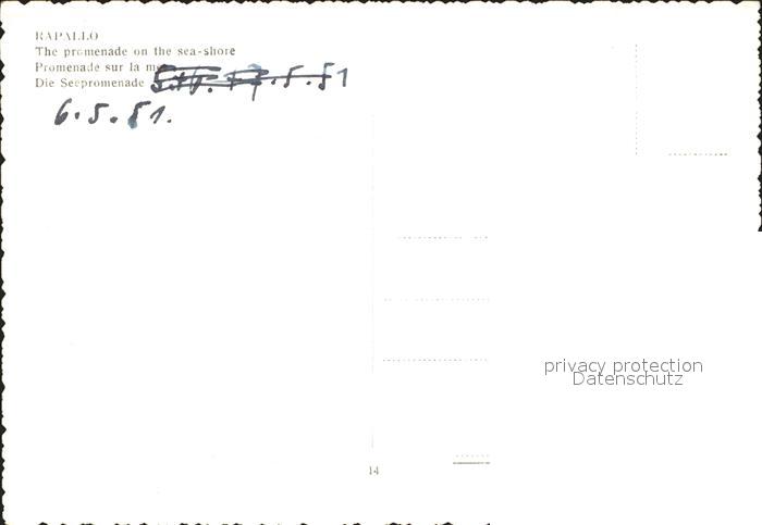 Rapallo Passegiata a mare postalisch nicht gelaufen Erhaltung siehe scans