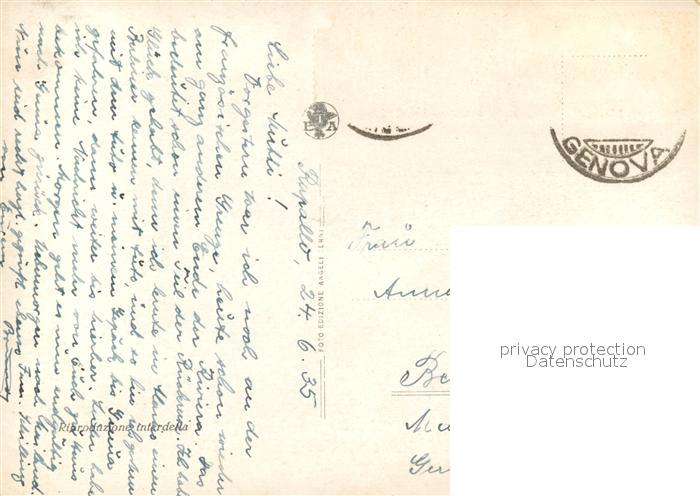 old postcard Rapallo Promenade Denkmal postalisch gelaufen Erhaltung siehe scans [FriedD77]