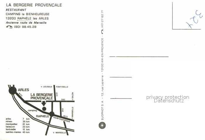 12653592 Raphele les Arles La Bergerie Provencale Restaurant Camping la Bienheureuse postalisch nicht gelaufen Erhaltung siehe scans [FriedD77] KatCode: 11170013213004