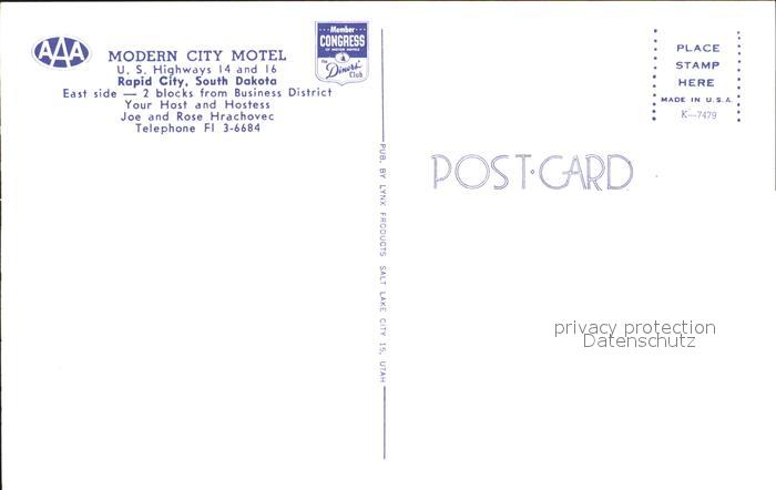 11688332 Rapid City South Dakota City Motel postalisch nicht gelaufen KatCode: 14140440000000