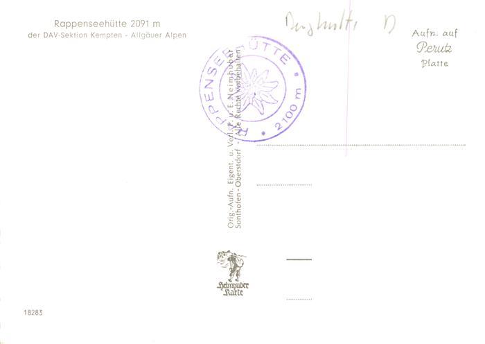 73937224 Rappenseehuette 2091m Allgaeuer Alpen Oberstdorf mit Hochgrundspitze und Rappenseekopf postalisch nicht gelaufen Erhaltung siehe scans [WerneD78] KatCode: 11110009780133