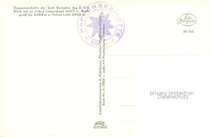 73809664 Rappenseehuette 2091m Allgaeuer Alpen Oberstdorf Panorama postalisch nicht gelaufen Erhaltung siehe scans [FriedD77] KatCode: 11110009780133