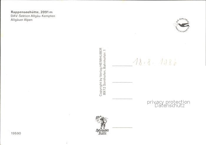 72495107 Rappenseehuette Rotgundspitze Linkerskopf Hohes Licht postalisch nicht gelaufen Erhaltung siehe scans KatCode: 11110009780133
