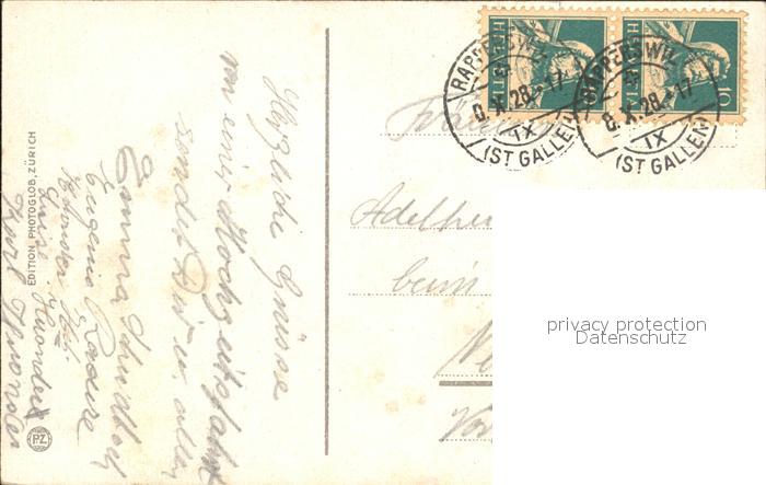 12031566 alte Postkarte Rapperswil SG Marktplatz mit Burg postalisch gelaufen Erhaltung siehe scans KatCode: 11470190570714