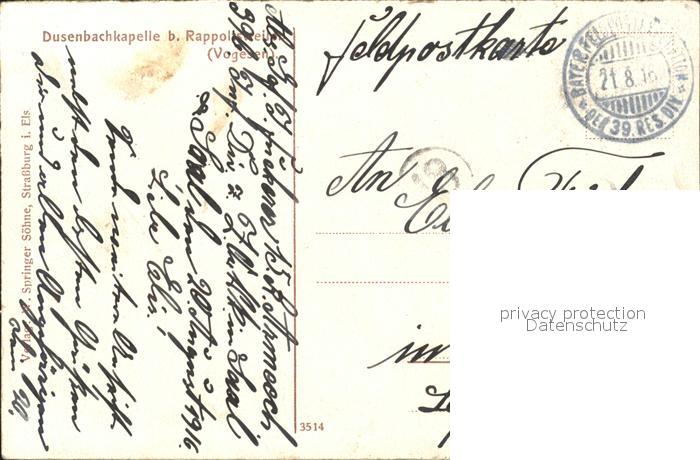 11666810 carte postale Rappoltsweiler Haut Rhin Elsass Dusenbachkapelle postalisch gelaufen Feldpost Erhaltung siehe scans KatCode: 11170068568269