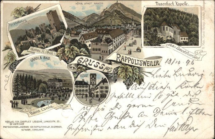 10868512 Rappoltsweiler Haut Rhin Elsass Rappoltsweiler St. Ulrichsburg Hotel Stadt Nanzig Dusenbach Kapelle Litho KatCode 11170068568269