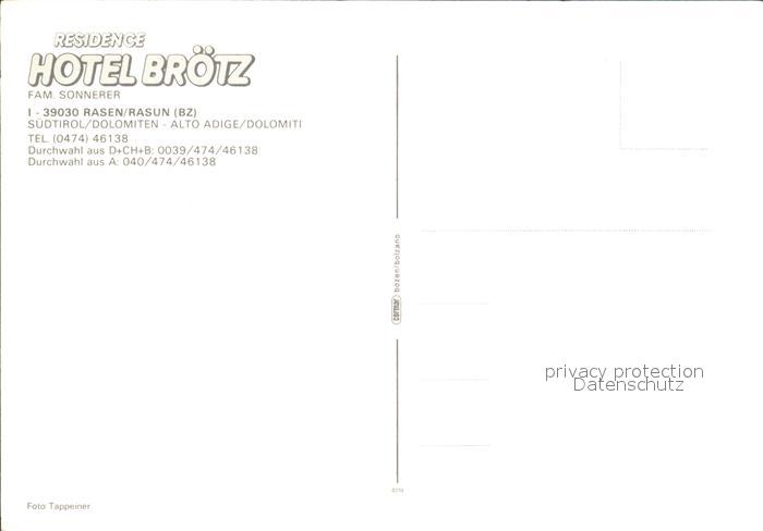 Rasen Rasun Hotel Broetz postalisch nicht gelaufen Erhaltung siehe scans