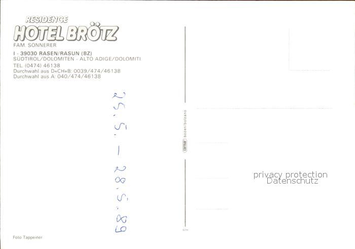 Rasen Rasun Hotel Broetz Residence postalisch nicht gelaufen Erhaltung siehe scans [AntonD74]