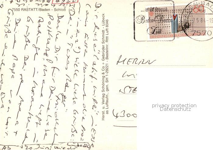 73540348 alte Postkarte Rastatt Fliegeraufnahme Schloss postalisch gelaufen Erhaltung siehe scans [LiesaD40] KatCode: 11110008216043