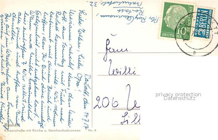 73065386 alte Postkarte Rastatt Kaiserstrasse mit Kirche und Bernhardusbrunnen postalisch gelaufen Erhaltung siehe scans [WerneD78] KatCode: 11110008216043