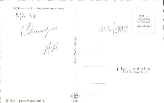 72074759 Rastatt Pagodenburg Anlage postalisch nicht gelaufen Erhaltung siehe scans KatCode: 11110008216043