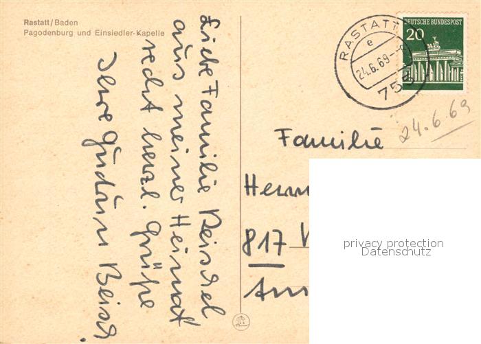 73073900 alte Postkarte Rastatt Pagodenburg und Einsiedler Kapelle postalisch gelaufen Erhaltung siehe scans [WerneD78] KatCode: 11110008216043