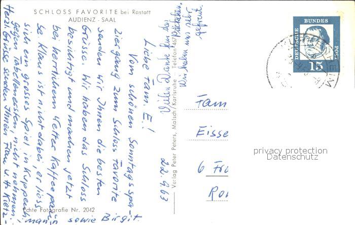 72432443 alte Postkarte Rastatt Schloss Favorite postalisch gelaufen Erhaltung siehe scans KatCode: 11110008216043