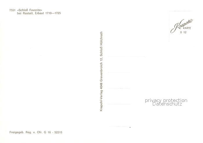 73617181 Rastatt Schloss Favorite Fliegeraufnahme postalisch nicht gelaufen Erhaltung siehe scans [PaolaD17] KatCode: 11110008216043