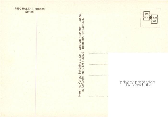 73041754 Rastatt Schloss Fliegeraufnahme postalisch nicht gelaufen Erhaltung siehe scans [WerneD78] KatCode: 11110008216043