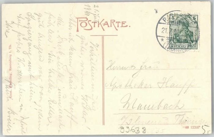70634220 alte Postkarte Rastenberg postalisch gelaufen KatCode: 11110016068042