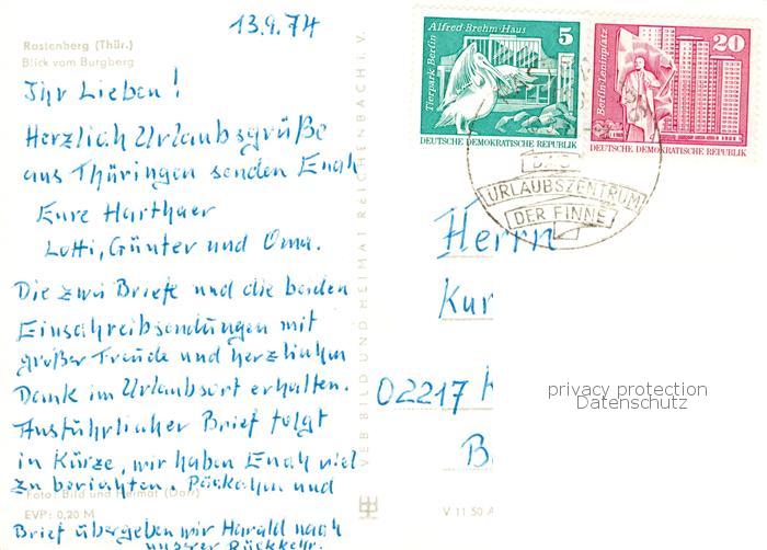 73834013 alte Postkarte Rastenberg Blick vom Burgberg postalisch gelaufen Erhaltung siehe scans [WerneD78] KatCode: 11110016068042