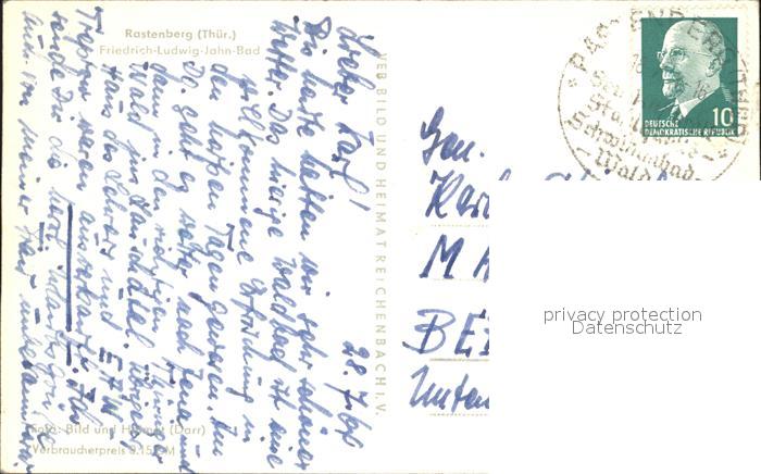 72007090 alte Postkarte Rastenberg Friedrich-Ludwig-Jahn-Bad postalisch gelaufen Erhaltung siehe scans KatCode: 11110016068042