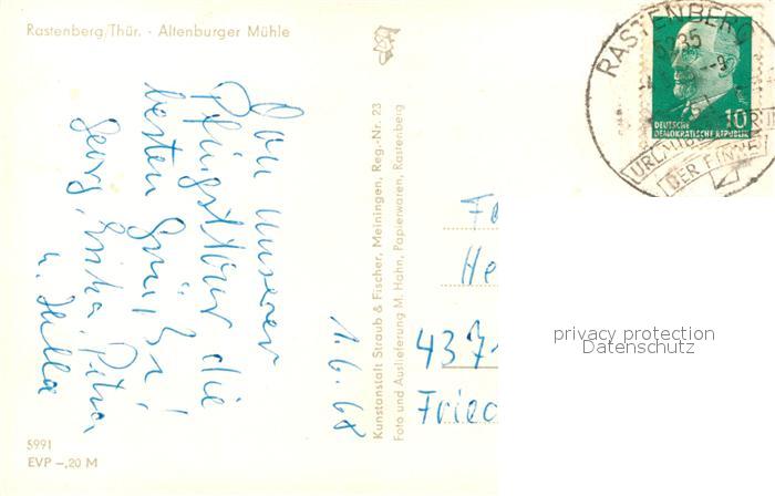 73612856 alte Postkarte Rastenberg Gaststaette Altenburger Muehle postalisch gelaufen Erhaltung siehe scans [FriedD77] KatCode: 11110016068042