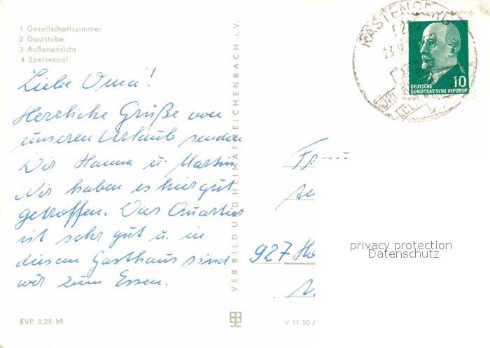 72730470 alte Postkarte Rastenberg HOG Kurhaus Gaststaette Speisesaal postalisch gelaufen Erhaltung siehe scans [FriedD77] KatCode: 11110016068042