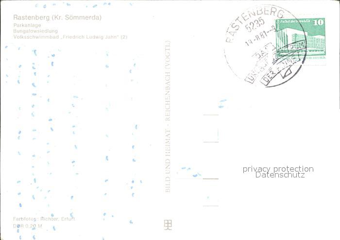 72347472 alte Postkarte Rastenberg Parkanlage Bungalowsiedlung Schwimmbad Friedrich Ludwig Jahn postalisch gelaufen Erhaltung siehe scans KatCode: 11110016068042