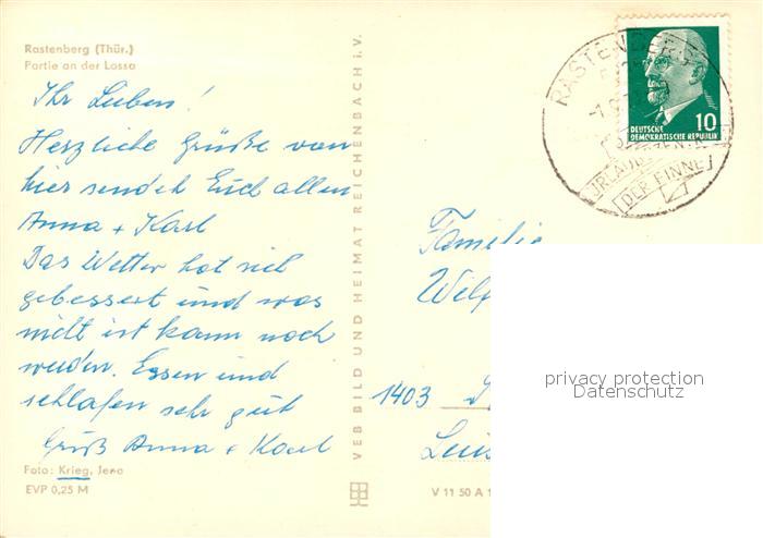 73335123 alte Postkarte Rastenberg Partie an der Lossa postalisch gelaufen Erhaltung siehe scans [WerneD78] KatCode: 11110016068042