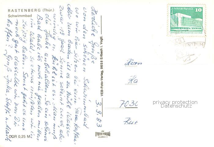 73757025 alte Postkarte Rastenberg Schwimmbad postalisch gelaufen Erhaltung siehe scans [WerneD78] KatCode: 11110016068042