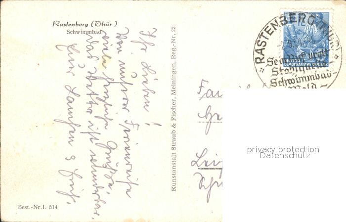 72048072 alte Postkarte Rastenberg Schwimmbad postalisch gelaufen KatCode: 11110016068042