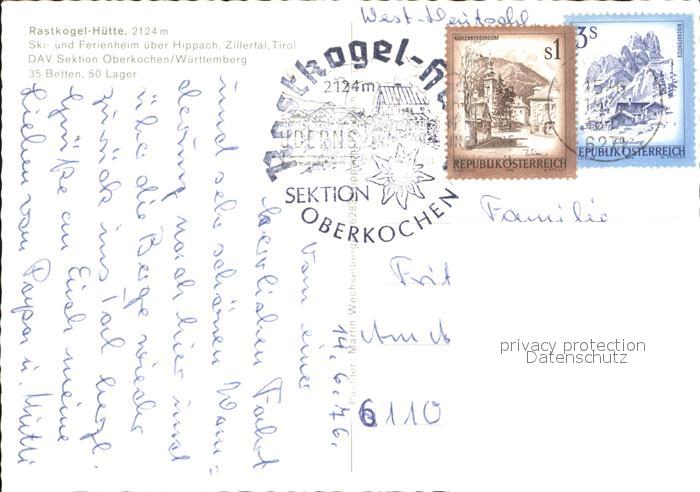 72240307 alte Postkarte Rastkogelhuette Panorama Zillertal Alpen Alpenflora postalisch gelaufen Erhaltung siehe scans KatCode: 11390335070916