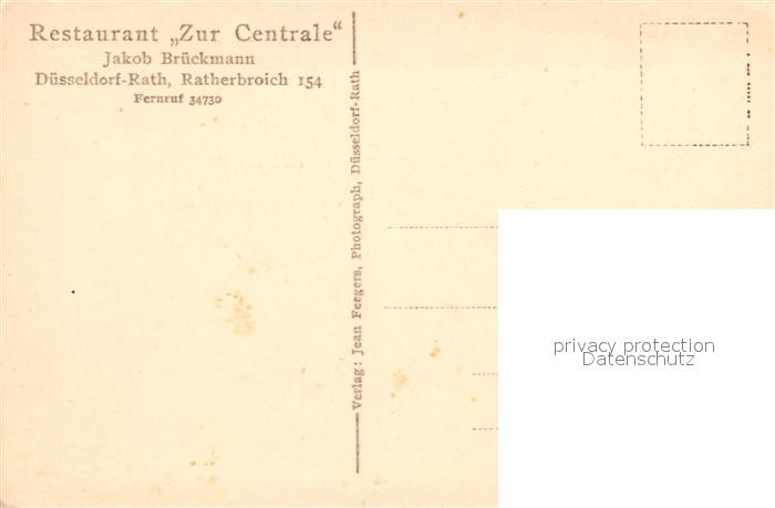 32980104 Rath Duesseldorf Restaurant Zur Centrale postalisch nicht gelaufen Erhaltung siehe scans [NatalD47] KatCode: 11110005111000