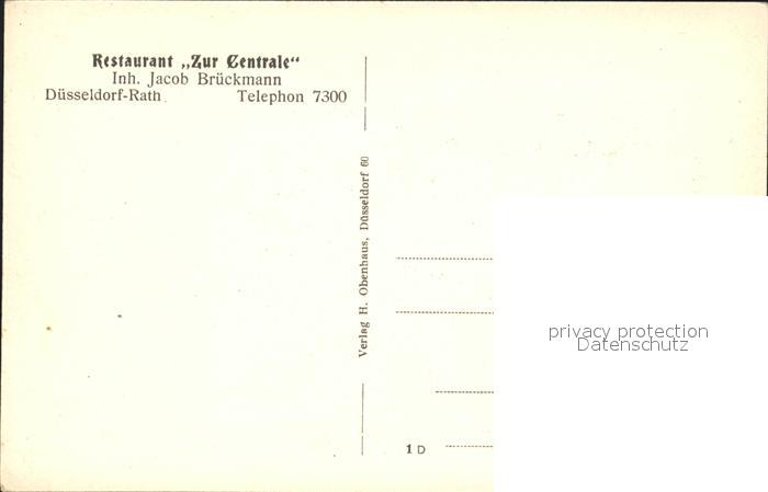 32039772 Rath Duesseldorf Restaurant Zur Centrale postalisch nicht gelaufen Erhaltung siehe scans KatCode: 11110005111000